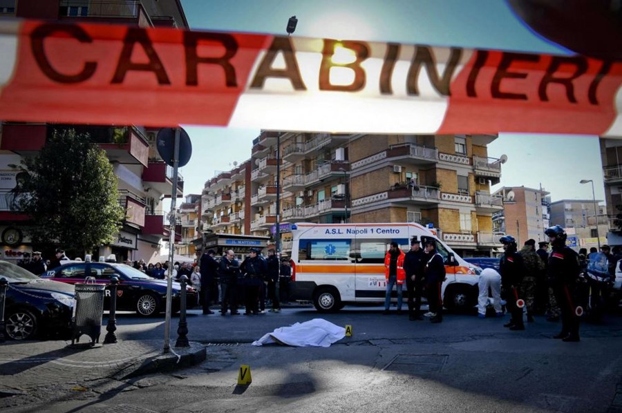 Полиция и военни блокираха улица в Неапол след показното убийство на Ренато ди Джовани.