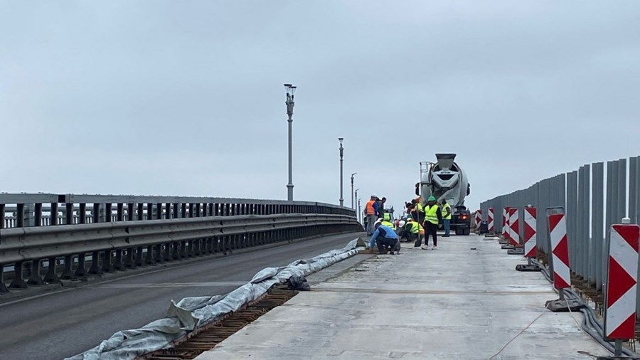 Ключов етап от основния ремонт на Дунав мост при Русе стартира днес с полагането на бетона за свързване на зоните между новите стоманобетонови панели в естакадната част на съоръжението. Поради спецификата на строителните дейности, от 9:00 часа тази сутрин е преустановено движението в двете посоки за всички видове превозни средства.
