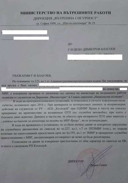 За сметка на това обаче проверката на МВР показала, че има извършено престъпление от общ характер по смисъла на Наказателния кодекс. Поради тази причина случаят е пратен на прокуратурата.