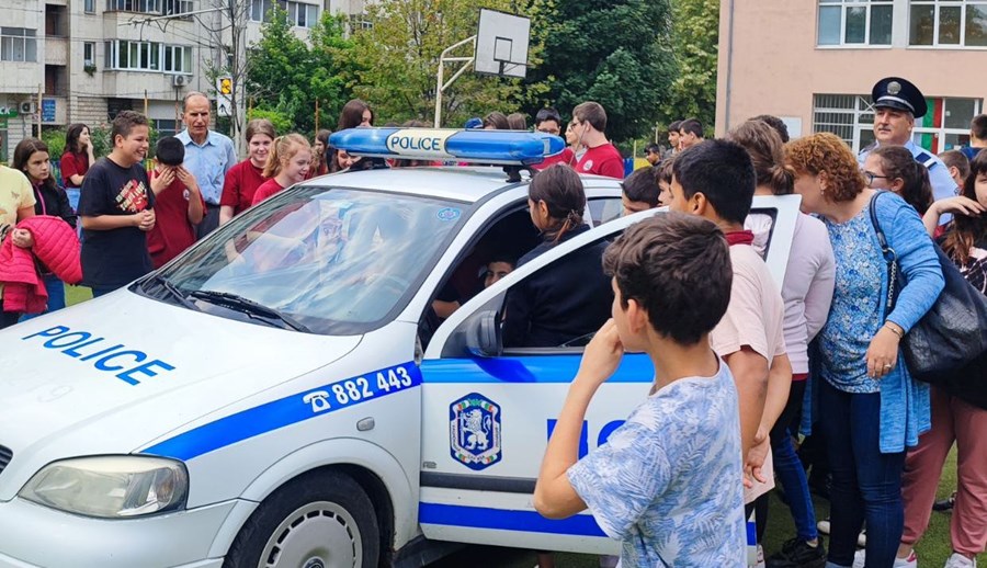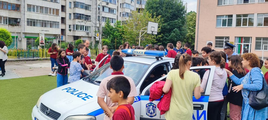 Служители от „Териториална полиция“ и инспектор от „Детска педагогическа стая“ от Второ районно управление, на чиято територия на отговорност е разположено училището, направиха демонстрация с полицейска техника в двора, проведоха и превантивни беседи с учениците, във връзка с безопасността на движението, както и за това по какъв начин да предпазват себе си и другите, по време на предстоящата лятна ваканция.
