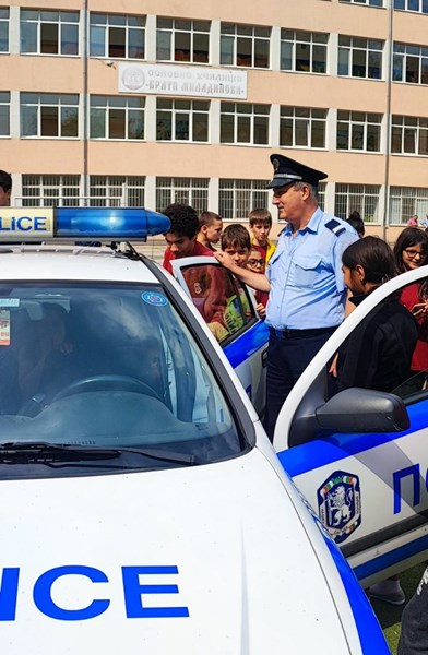 След това полицаите гостуваха в класа на Теодор Симеонов, където разговорите между служителите на реда и децата продължиха.
