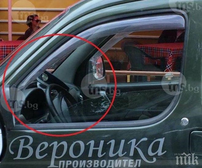 14:00 часа Бачково. Шофьорът на пикап "Ситроен Берлинго" е спрял като арабин в пустиня почти на средата на шосето, но никой не му прави забележка.