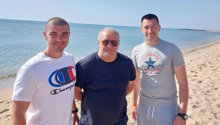 *На снимката: Димитър Пеев (с бялата тениска) и Даниел Перушински с треньора си, криминалиста Младен Борисов (в средата)