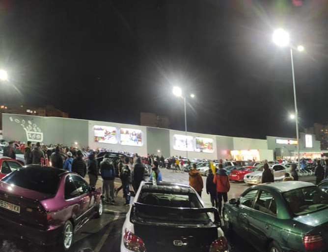 Екшънът се разиграва на паркинга на голяма търговска верига