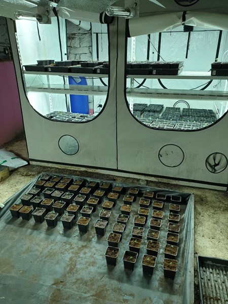 В помещението, собственост на 65-годишен софиянец, са намерени стотици саксии с канабисови растения, в различен стадий на зрелост, както и голямо количество растителна маса канабис, подготвена за сушене. На място, в момент на извършване на престъпната дейност, са установени и задържани трима мъже - двама столичани на 25 и 31 години и 38- годишен варненец.
