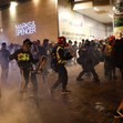 Секунди по-късно проехтяха още два изстрела, докато полицаят влезе в остра разпра с друг маскиран протестиращ, който падна. И двамата бяха задържани от служители на реда.