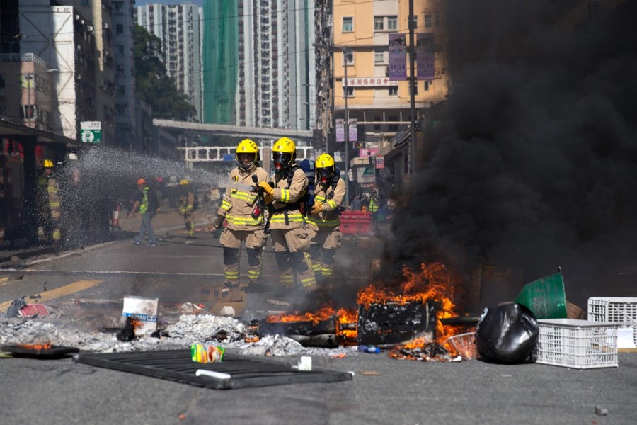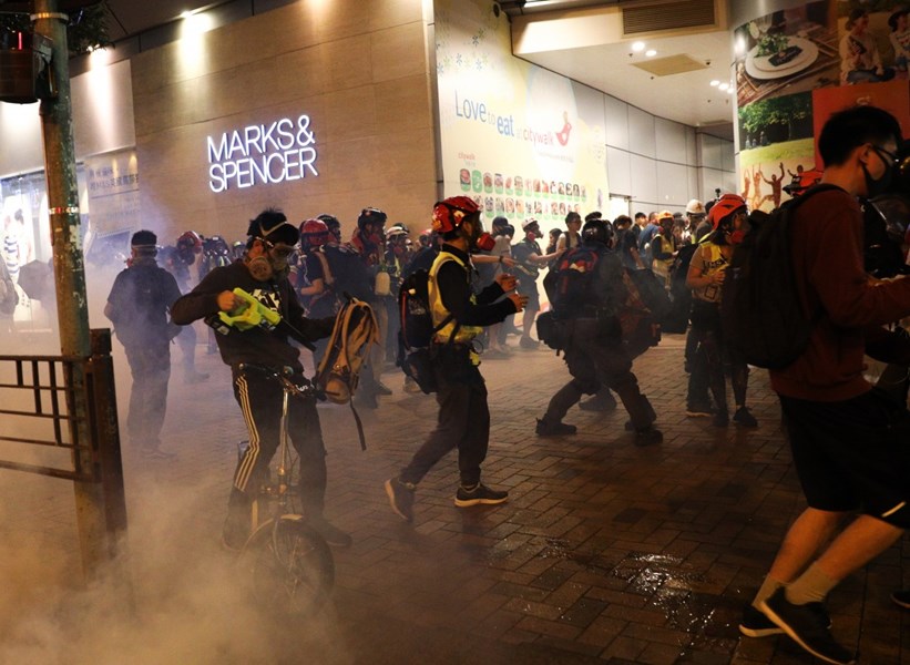 Инцидентът, който беше излъчен на живо във Фейсбук, е последният засега напрегнат момент в продължаващите повече от пет месеца протести за демокрация, които обхванаха международния финансов център.
