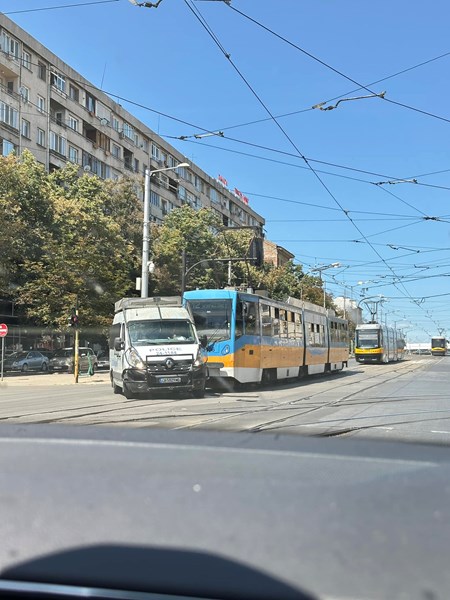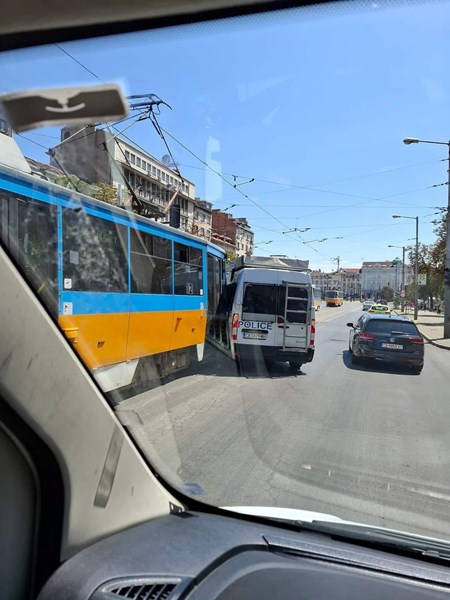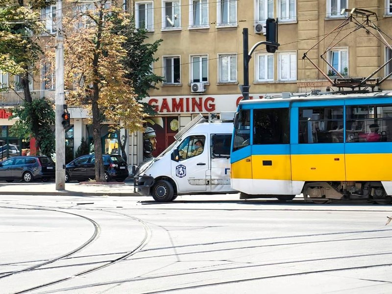 Полицейски бус пресече пътя на трамвай в София