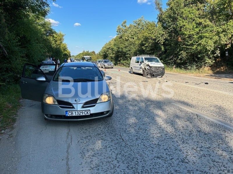 Бус на Криминалистична лаборатория е ударил лек автомобил