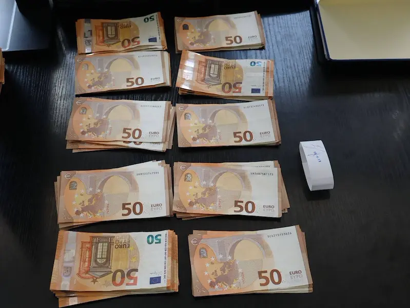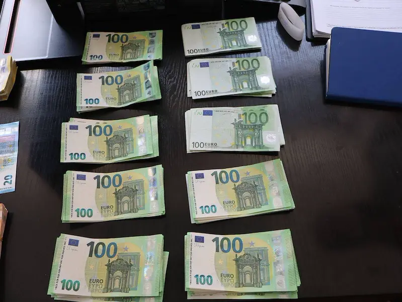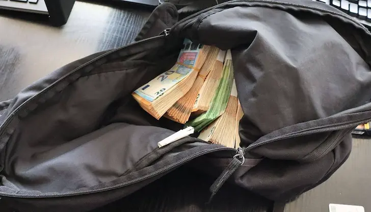 Полицейската операция е задействана незабавно след информация, че лицата теглят крупни суми от местен банков клон. Мъжете са били проследени от органите на реда и задържани на паркинг пред голяма търговска верига в града. При последвалия обиск униформените открили парите, които били разпределени в пачки и скрити в раници.