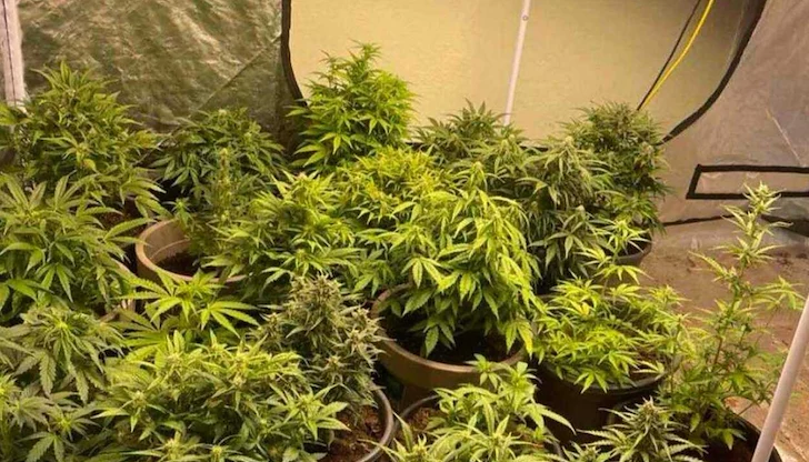 По време на акцията криминалистите са извършили щателна проверка на частен имот, използван от 40-годишен мъж от Сандански. В една от стаите на жилищната сграда униформените са открили специално изградена полиетиленова палатка, която е функционирала като закрита лаборатория за отглеждане на наркотични растения.