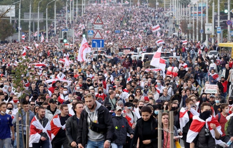 Полицията в Беларус използва водно оръдие срещу поредния неделен протест в столицата Минск против преизбирането на президента Александър Лукашенко.