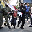 Полицията блокира жените и започна да ги тегли в полицейски фургони, докато стояха със завързани ръце, задържайки бързо стотици, видя журналист от Франс прес. Полицията вдигна някои жени във въздуха, за да ги отнесат.