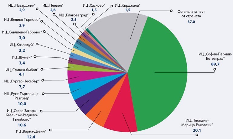 - Основни общини – София (93%), Перник (1,6%), Елин Пелин (1,3%), Ботевград (1,1%)