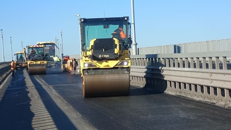 Ремонтните дейности по Дунав мост при Русе напредват с полагането на асфалт върху 320-метровия участък, който е затворен за основна реконструкция. През изминалата седмица е поставена хидроизолация на пътната плоча и стартира инсталирането на предпазните парапети, съобщиха от Агенция "Пътна инфраструктура" (АПИ).