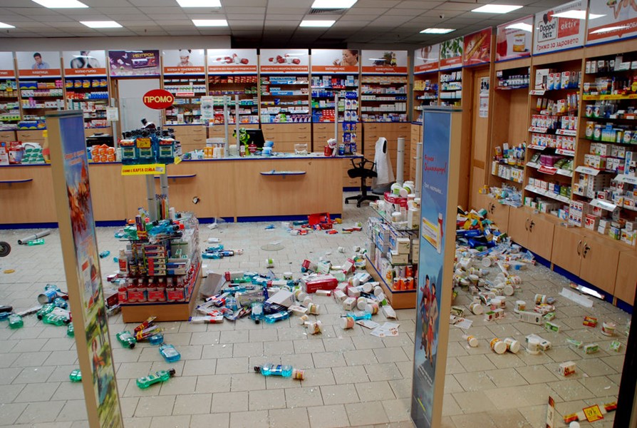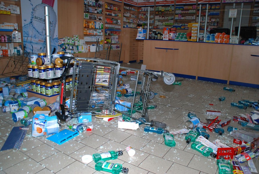За нула време помещението било заринато със смачкани продукти и слой потрошени стъкла. Трошенето продължило въпреки виковете на втрещените аптекарки. Нападателят не ги закачил, нито дал вид, че има заплашителни намерения към тях. Същевременно не се трогвал нито от виковете „Ама какво правиш бе?!“, нито от ескалиралите в паника писъци за помощ и призоваване на полицията. СОТ и ченгетата наистина дошли светкавично и закопчали без съпротива нападателя.