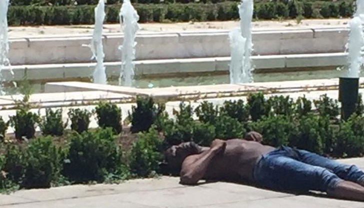 Чужденецът, който е с доста тъмна кожа, реши да посъбере слънчеви лъчи, като положи голото си тяло на буквално на пътя на пешеходците в близост до шадраваните, пише nbox.bg