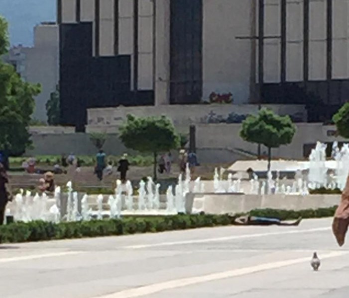 Тъмнокож мигрант легна гол на плочките пред НДК.