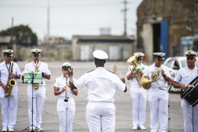 Официалната церемония започна с изпълнение от военен оркестър на химните на Бразилия и България. Капитанът на кораба Николай Данаилов приветства гостите на празничното посрещане.