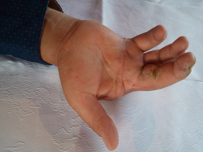 „Последваха 11 – до момента – операции в „Пирогов“, като първоначално лекарите се опитваха да възстановят отрязаните пръсти. Но впоследствие се получиха усложнения. Показалецът беше ампутиран, а в момента и средният пръст е със сериозен оток и вероятно го очаква същото. Останалите са без чувствителност и подвижност, цялата ръка периодично се възпалява и подува.
