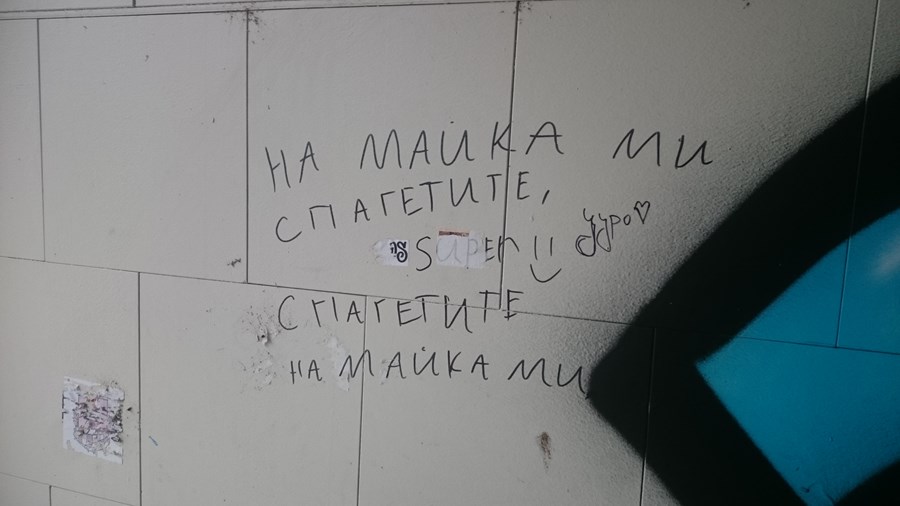 Служител на общината случайно преминаващ под кръговото до РДВР остана възмутен от помпозните украси по стените на подлеза!