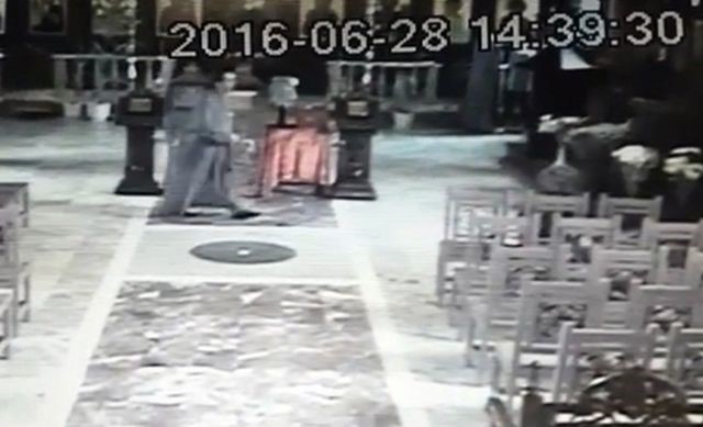След като окраде храма на 28 юни, йеромонахът лъсна във видео, заснето от охранителната камера. То бе публикувано от отец Василий в най-големия сайт за видеосподеляния Youtube.