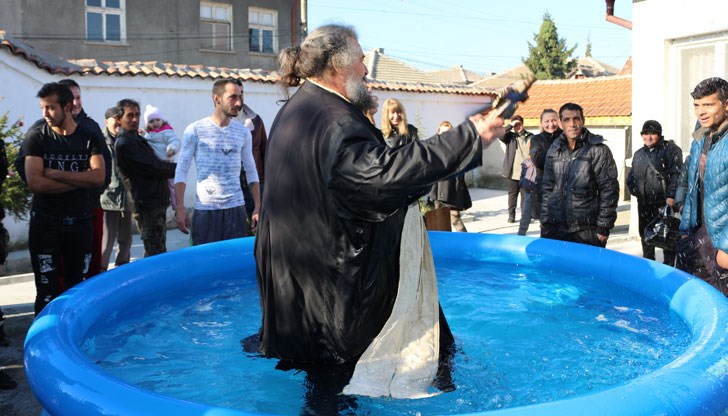 Поп Трифон хвърли Богоявленския кръст в надуваем басейн