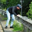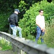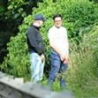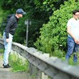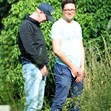 Приятелят му прескача мантинелата и отива да пикае в храстите, а Крис наднича към него, докато той си върши работата.