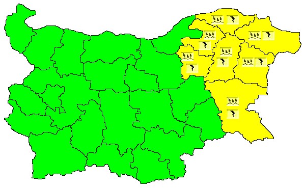 Утре пороите се изместват на изток. НИМХ обяви жълт код за обилни валежи в областите в Източна България: