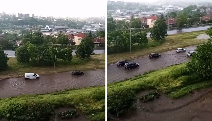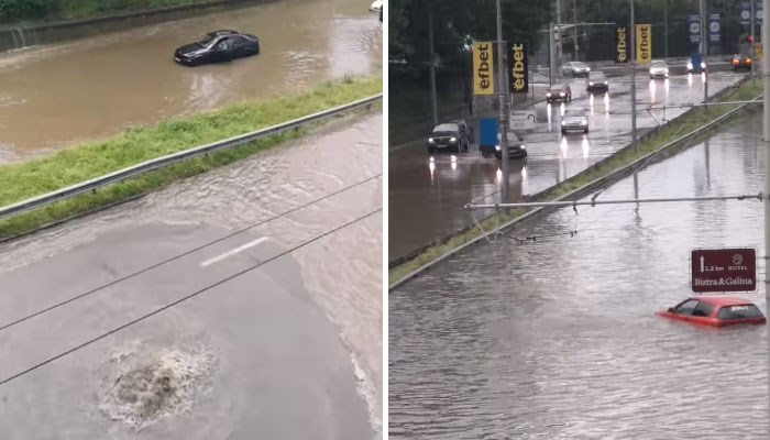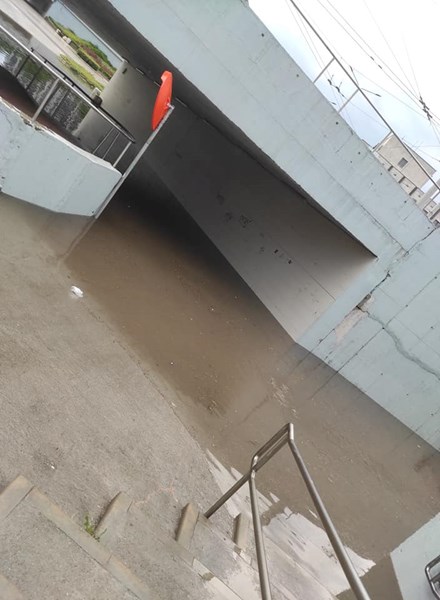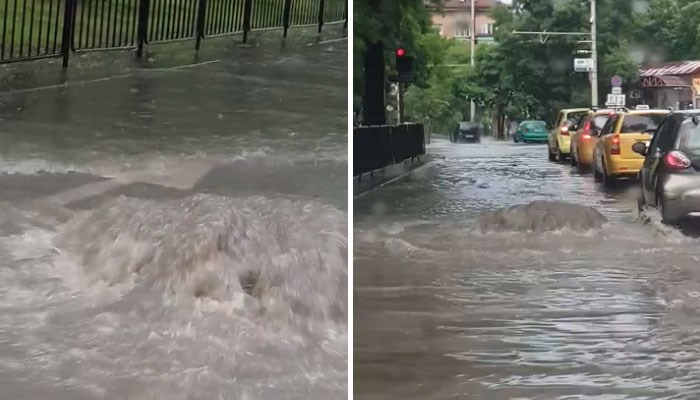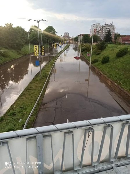 Подлезът на кръговото кръстовище до полицията е непроходим. Нивото на водата е толкова високо, че на практика ще трябва да се преплува. Шахтите на булевард "Цар Освободител" пред училище "Йордан Йовков" вместо да поемат водата, те я бълват обратно, под формата на мръсен гейзер.