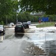 Вследствие на пороя се наводни входа на града откъм с. Бело поле, автомобилите буквално плуваха в половин метър вода. Един лек автомобил закъса в езерото, образувало се на входа на града.