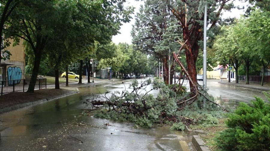 Пороен дъжд, придружен от силен вятър нанесе щети в Благоевград.