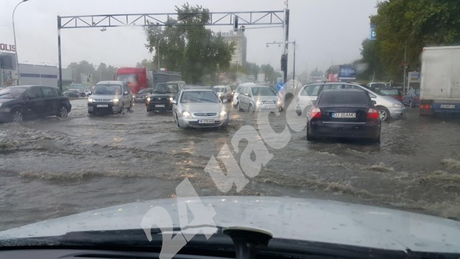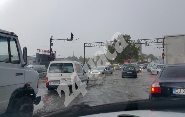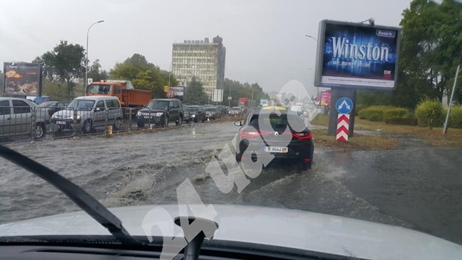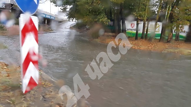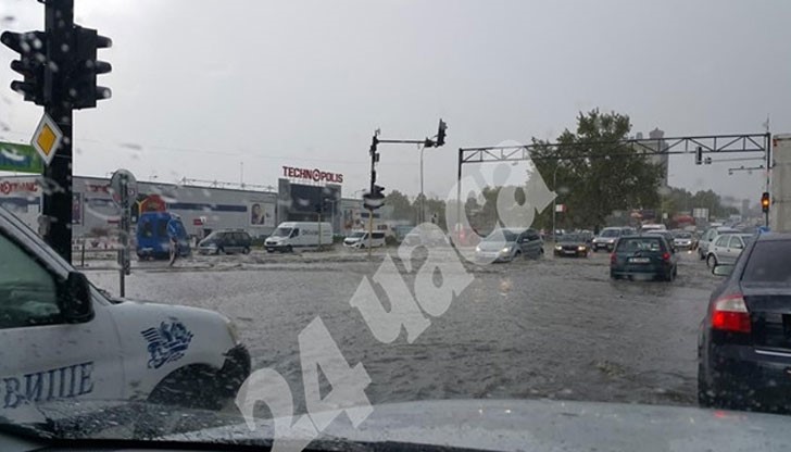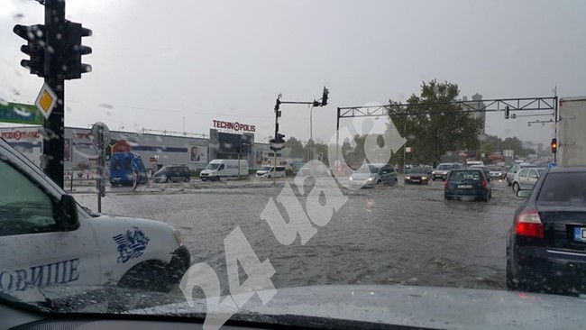 За кратко дъждът премина в градушка, но след това продължи с огромна сила да наводнява града, показва 24 часа.