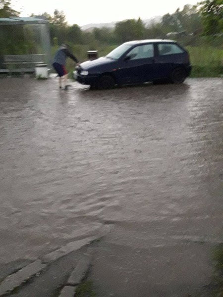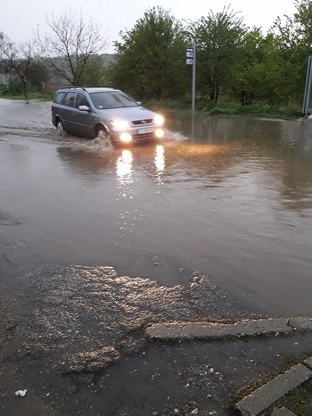 Г-н Илиев е заснел погълнатата от вода улица и добавя, че дори има закъсал автомобил.