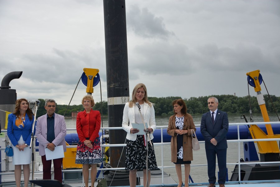 Посланикът на Нидерландия у нас Беа тен Тъшър кръсти в Русе новата драга "Янтра" на изпълнителната агенция "Проучване и поддържане на река Дунав"/ИАППД/.