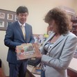 Директорът г-жа Теодора Евтимова благодари за дарението и от своя страна поднесе: „Каталог от Международния конкурс за Ex Libris“, „Сборник доклади от Международна научна конференция 2017“, Албум на Регионална библиотека „Любен Каравелов“ и Сборник комикси от международен конкурс.