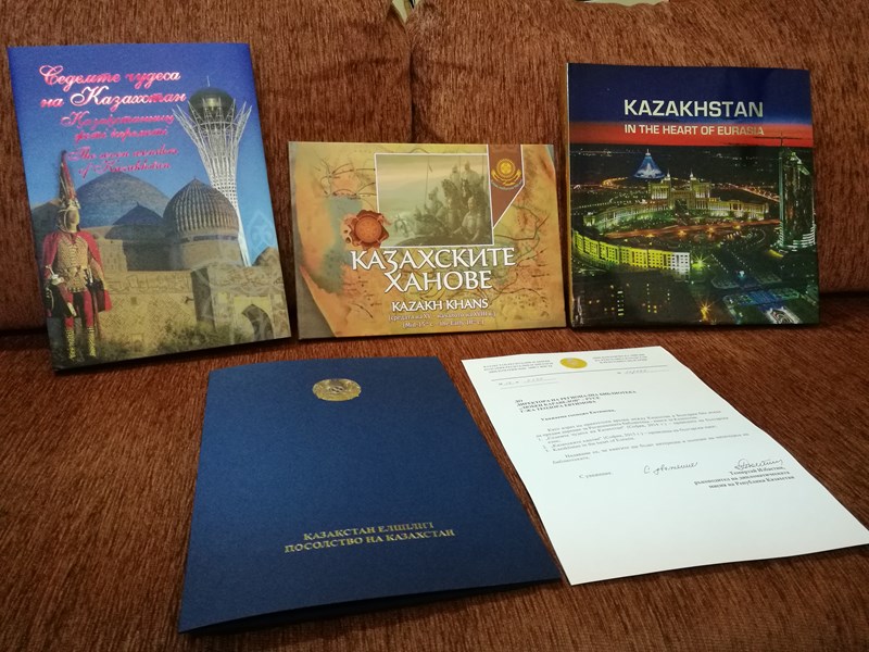 Като израз на приятелските връзки между Казахстан и България посланикът дари книгите: „Седемте чудеса на Казахстан“, „Казахстанските ханове“ и двете преведени на български език, и книгата „Kazakhstan in the heart of Eurasia“ – снимки на природните забележителности.