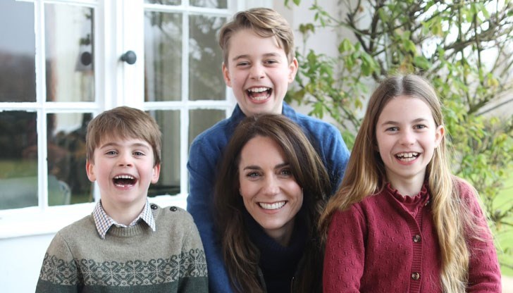 На снимката принцесата е седнала, заобиколена от принцеса Шарлот, принц Луи и принц Джордж, като последният е обгърнал ръцете ѝ.
