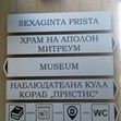 Първата е монтирана на входа (ул. „Цар Калоян” 2). Целта е туристи, организирани групи и случайни минувачи да се ориентират по-бързо и лесно за местоположението на откритата музейна експозиция. Втората група табели са изработени от еталбонд и може да бъде видяна веднага след влизането в обекта. Тя указва посоките, в които се намират музейната сбирка, Храмът на Аполон и наблюдателната кула, както и откъде могат да бъдат закупени билети, специализирана литература и сувенири.