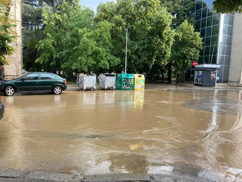 Запушените шахти превърнаха улиците в реки, водата извира като от фонтан. На редакционната поща на Новинарска агенция Е-79 са получили снимки за наводнени места от различни квартали в Благоевград.