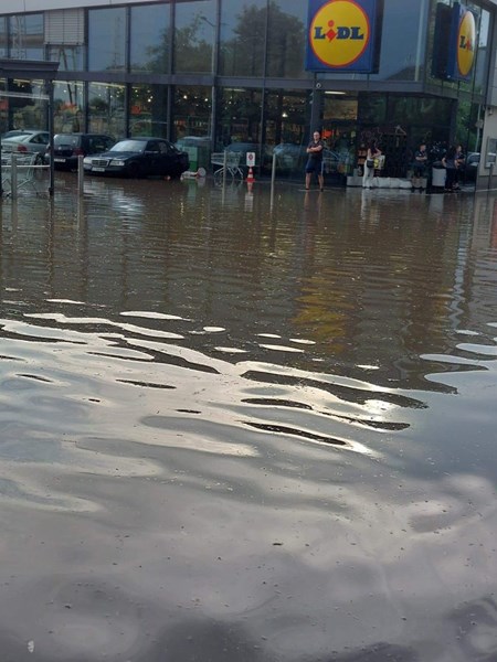 За около половин час се изсипа невероятно силен дъжд, придружен от гръмотевици. Десетки сигнали за наводнени мазета и прекъснато електричество са подадени на спешните телефони.