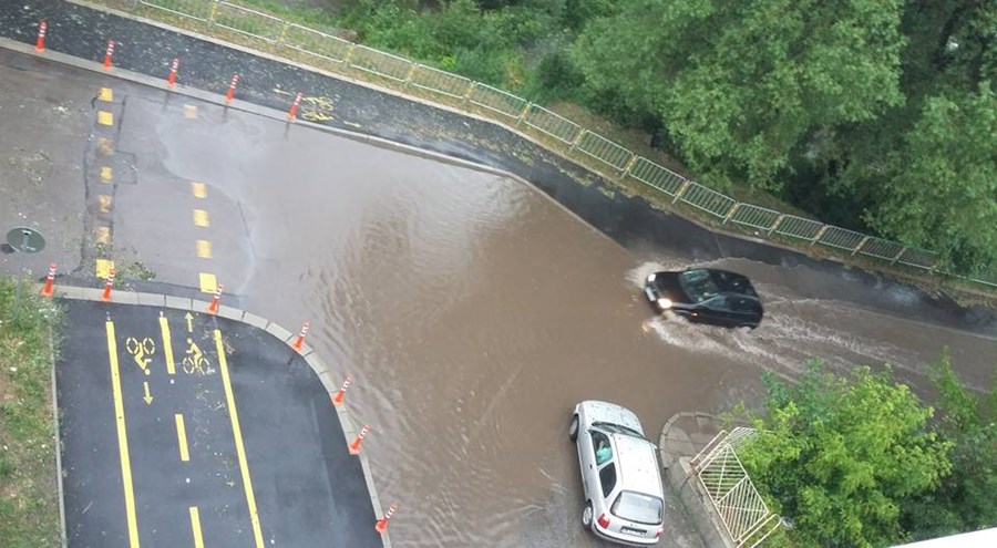 Канализацията на града се е запушила и не може да поеме цялото количество дъжд, което се изсипа през последните няколко часа.