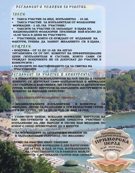 Повече информация във фейсбук страницата Фолклорни празници Приморска перла