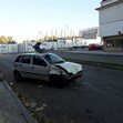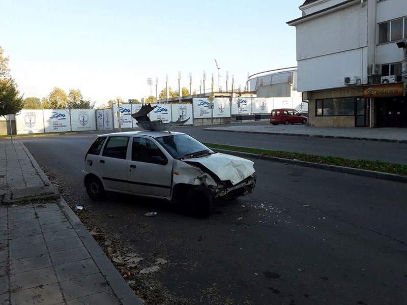 На снимката се вижда потрошен автомобил, видимо претърпял произшествие, който обаче изглежда напълно ...изоставен.