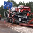 При поява на бавно движеща се колона шофьорът на автовоза превозващ ценния товар е успял да спре, но този зад него не е имал възможността да реагира толкова бързо и последствията са сериозни, предаде Факти.бг.