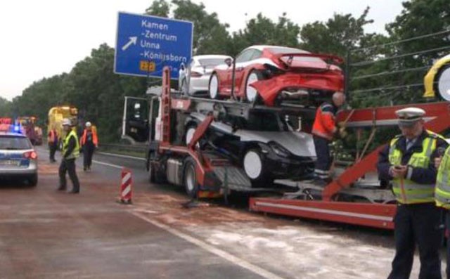 В нелеп инцидент случил се на германския аутобан A1 в близост до Дортмунд, цели шест броя от един от малкото останали емоционални автомобили - Cayman GT4 са получили сериозни травми.