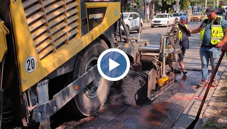 Строителните дейности се извършват в района на Професионалната гимназия по строителство, геодезия и архитектура. Заради високите температури работата ще продължи в два последователни дни - понеделник и вторник. Днес е положен първият слой асфалт, който изравнява изкопа с нивото на съществуващия асфалт. Утре ще се положи 5-сантиметровия слой, с който ще се изградят гърбиците на повдигнатите пешеходни пътеки.