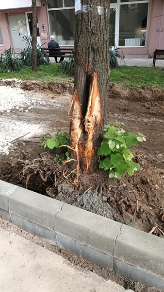 Жители на Русе изразяват възмущение от практиката при ремонт на улици да се нанасят щети на градската растителност. Публикации в социалната мрежа показват конкретни случаи на повредени дървета при текущи строителни дейности в града.