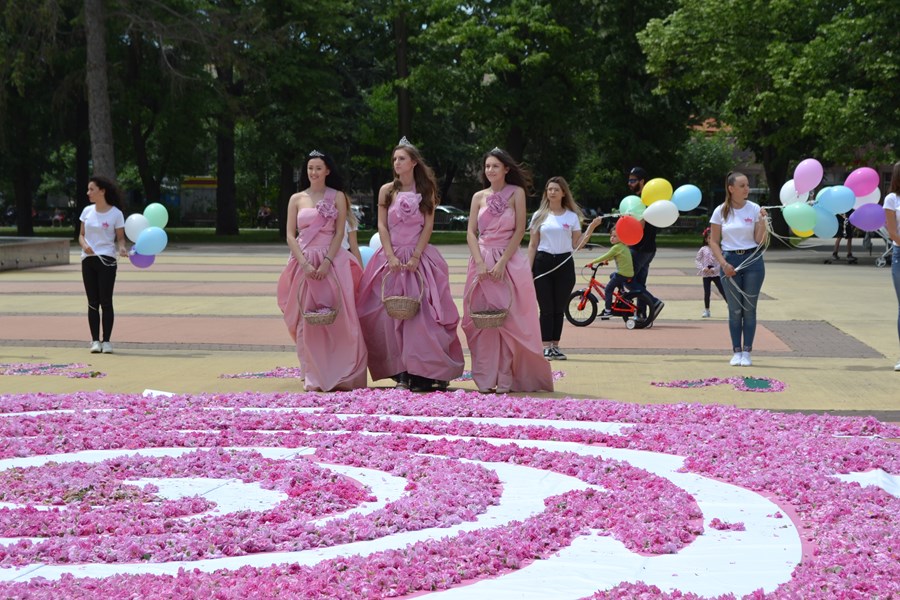 Поздравиха казанлъчани с пано от 72 хиляди розови цвята