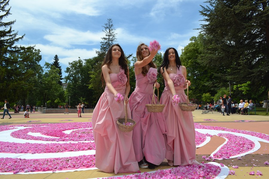 Цветовете от голямото розово пано бяха обилно „дезинфекцирани“ с ароматната розова вода. Те ще бъдат грижливо събрани, за да бъдат разпръснати в кулминационния неделен ден, когато хората ще поздравяват в центъра Царица Роза и нейните подгласнички. Красавиците ще достигнат за първи път до домовете на жителите на Казанлък. Тогава 72-те 000 розови цвята ще бъдат част от царственото приветствие за 117-те Празници на розата.